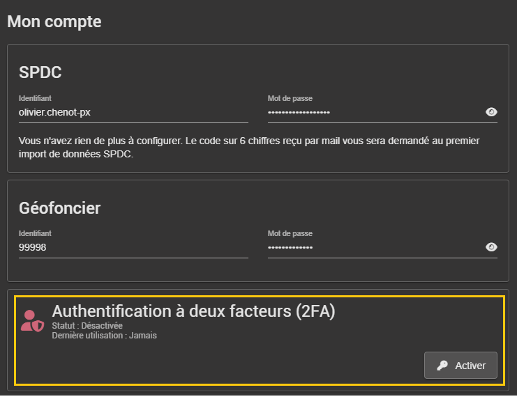 Dans la suite du document, la double authentification est appelée 2FA, pour authentification à deux facteurs.