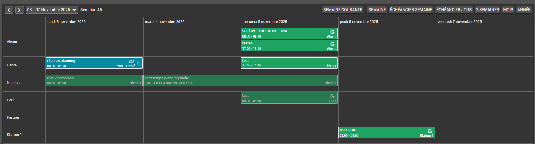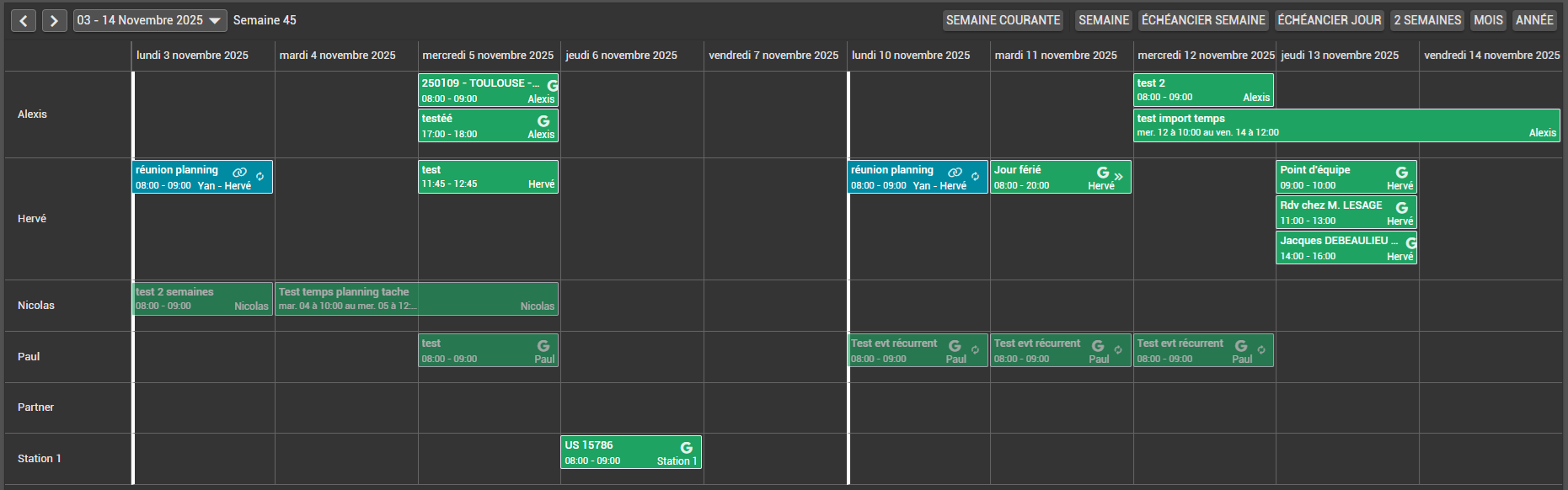 - Et inversement toutes les modifications effectuées dans Google Agenda sont visibles dans le planning Géoprod, il faut cependant que la vue ait été rafraichie.